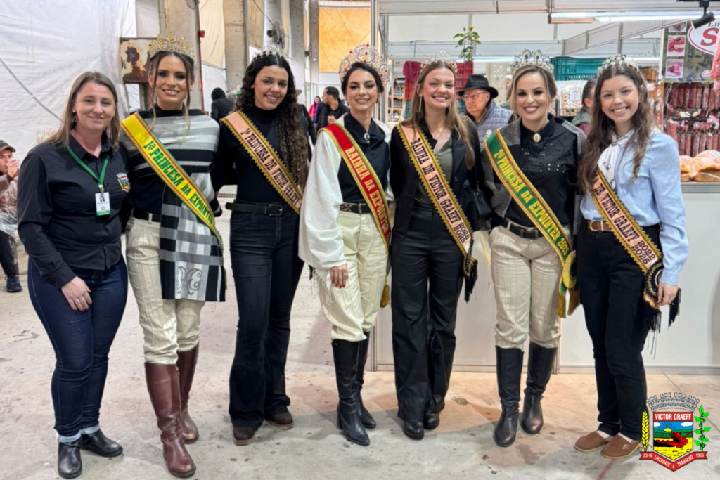 Na última quinta-feira, 4 de setembro, a Corte de Soberanas de Victor Graeff marcou presença na Expointer 2025, em Esteio, acompanhando o Prefeito Municipal em visita às empresas do município que participaram como expositoras no evento.