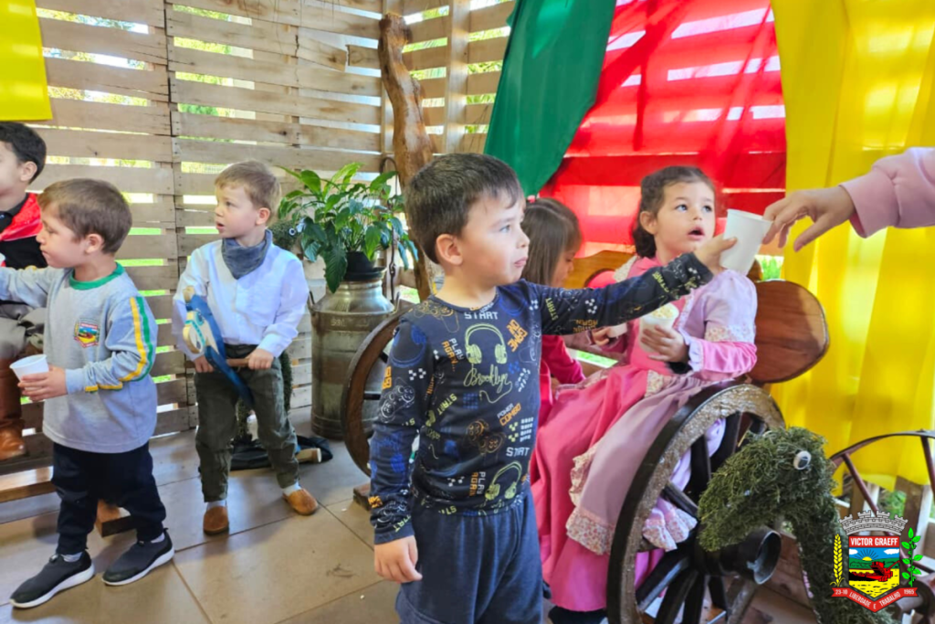 Entre as visitas recebidas ao longo da semana estiveram a Escola Especial Novo Horizonte, que participou de momentos de convivência, e a EMEI Cantinho do Amor, cujas turmas se envolveram ativamente nas atividades. As crianças da educação infantil compartilharam o tradicional mate doce, saborearam pipoca e realizaram apresentações culturais que encantaram os presentes.