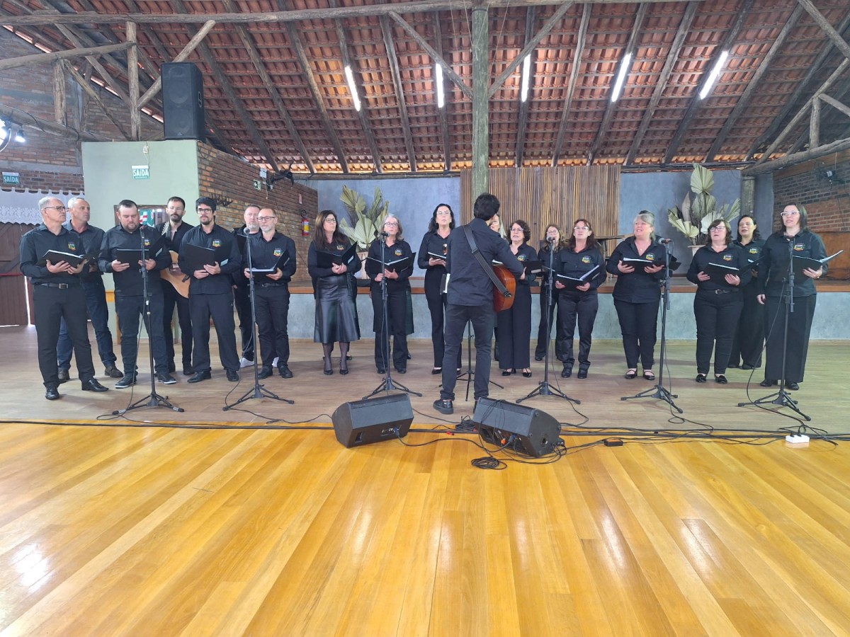O Coral Municipal Adulto de Victor Graeff, sob a regência do maestro Daniel Rodrigues e com acompanhamento do instrumentista Leonardo Oliveira, participou do Encontro de Corais Municipais, realizado no Salão do GAN Sepé Tiaraju, em Espumoso/RS.
