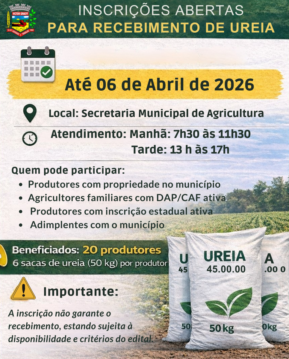 Estão abertas as inscrições para o recebimento de ureia no município
