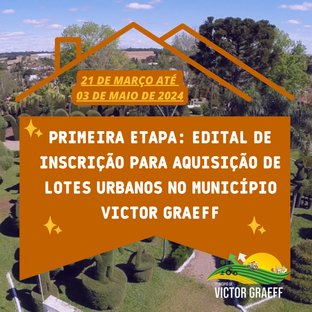 Primeira etapa: Edital de Inscrição para Aquisição de Lotes Urbanos no município Victor Graeff- As inscrições abertas :21 de março até 03 de maio de 2024