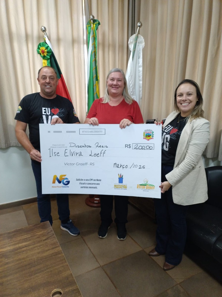 “Prefeito e Vice-Prefeita Entregam Prêmio do Programa Nota Fiscal Gaúcha à Ganhadora de Victor Graeff”