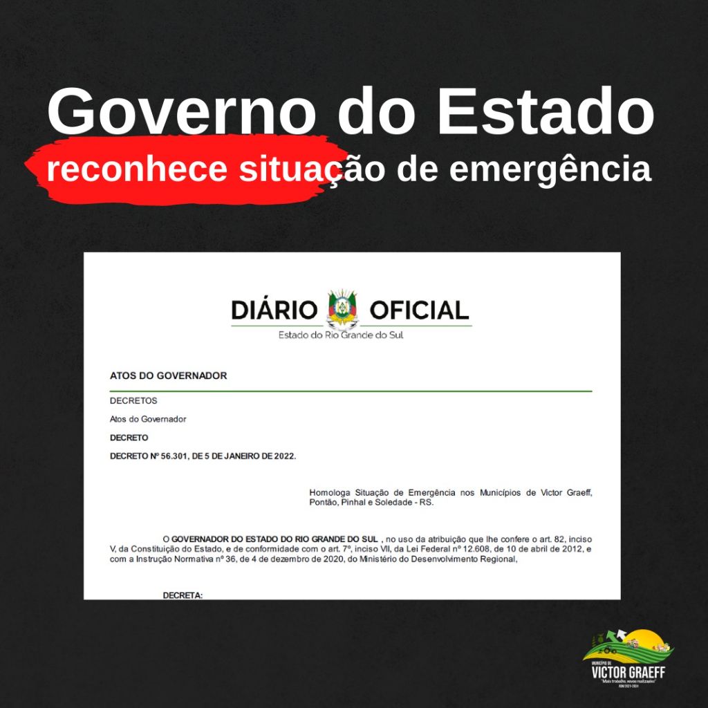 Governo do Estado reconhece situação de emergência em Victor Graeff