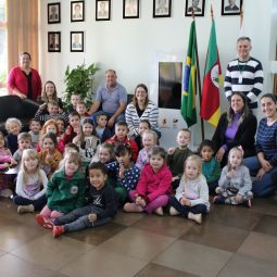 Alunos da EMEF Leonel de Moura Brizola apresentam Projeto: Educação Fiscal – “Alimento não é lixo” no Gabinete Municipal